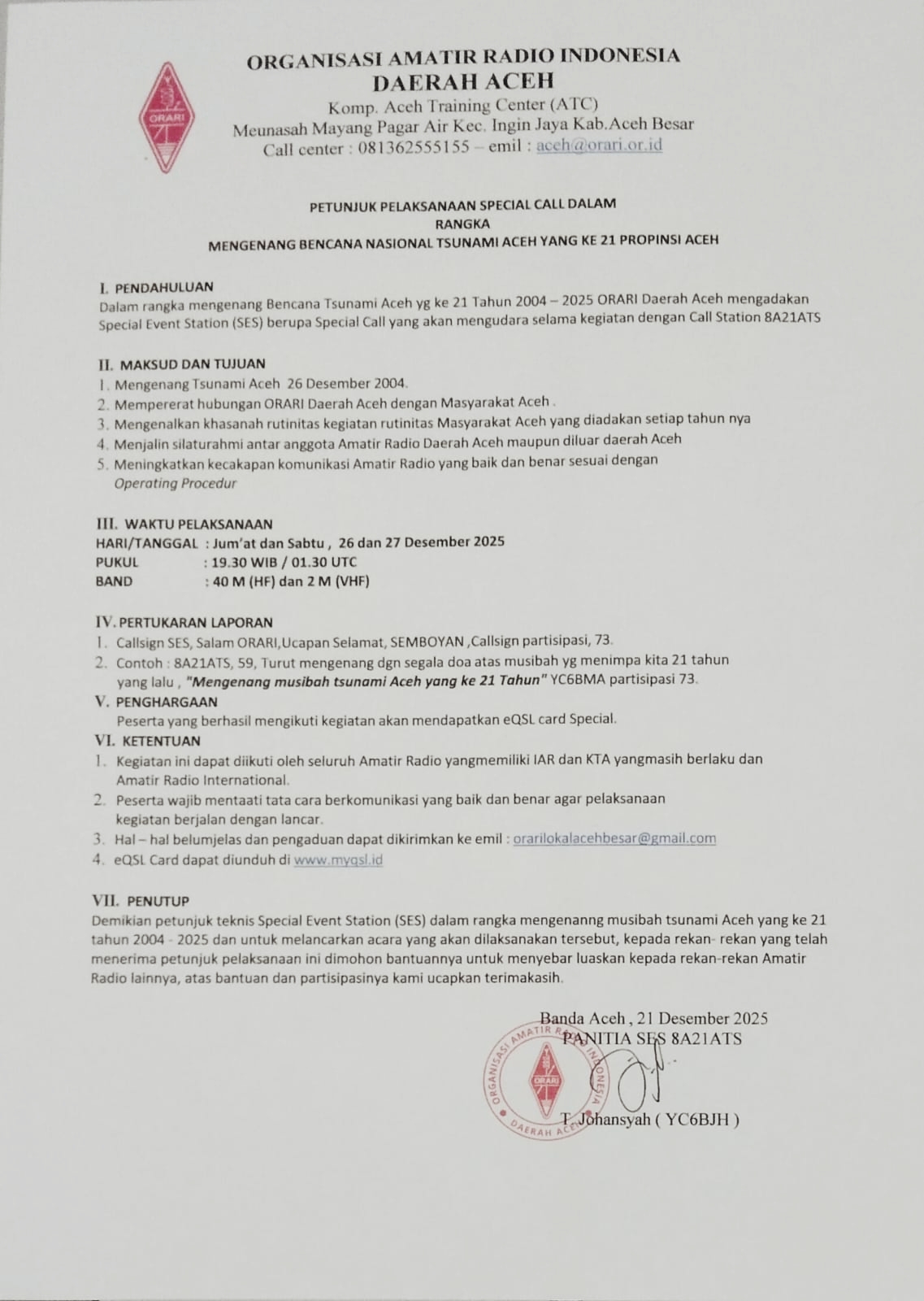 DUKOM (Dukungan Komunikasi) NATARU Natal 2025 dan Tahun Baru 2026 ORARI Lokal Kota Tangerang