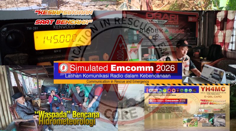 Kegiatan Simulated Emcomm 2026 ORARI Lokal Rejang Lebong, Rabu 04/02/2026 berjalan sukses. Latihan Komunikasi Radio saat kebencanaan, darurat pertolongan dan pencarian ini diikuti oleh anggota CORE (Communication in Rescue and Emergency), BPBD Rejang Lebong, Tagana Rejang Lebong, Rafflesia Navigator, Pokdarwis Air Bening, Suber Urip dan IV Suku Menanti.